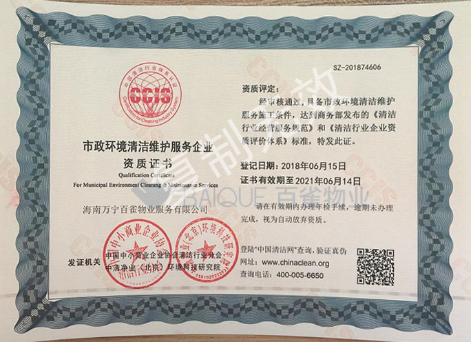 市政环境清洁证书