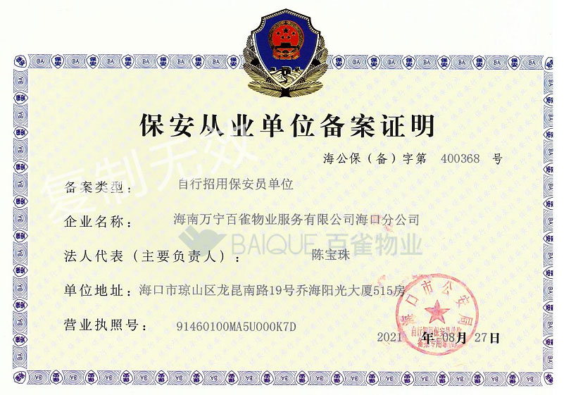 保安从业单位备案证