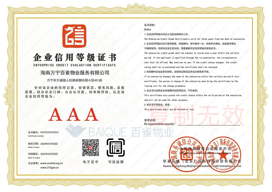 企业信用等级证书