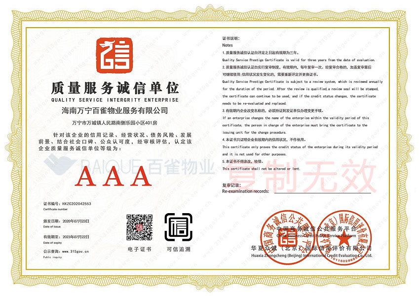 重服务守信用企业