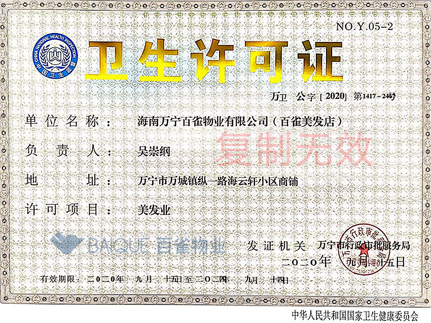 卫生许可证