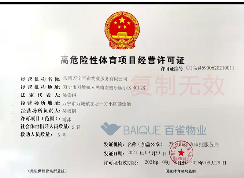 高危险性体育项目经营许可证