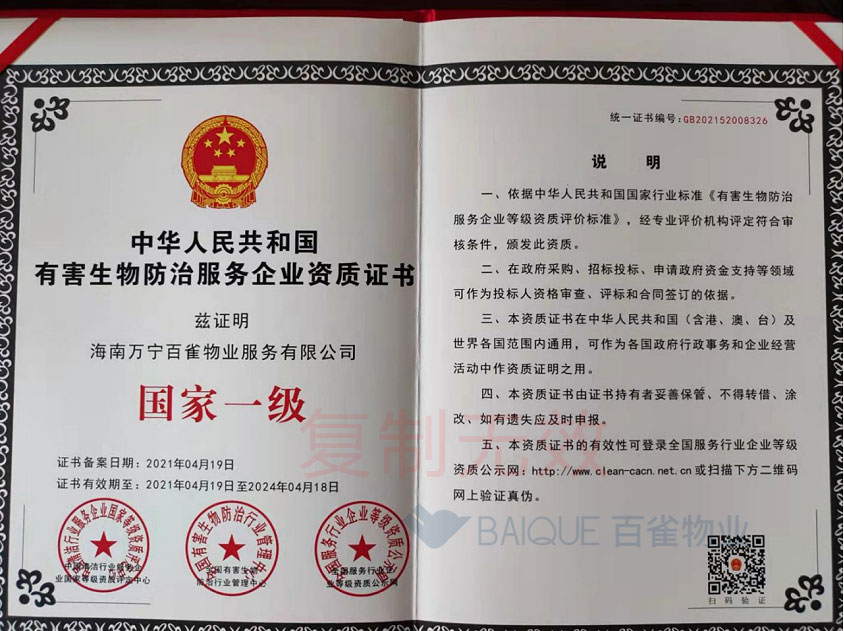 有害生物防治服务企业资质证书