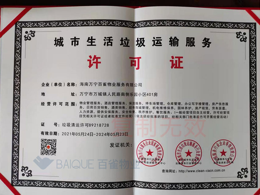 城市生活垃圾运输服务许可证