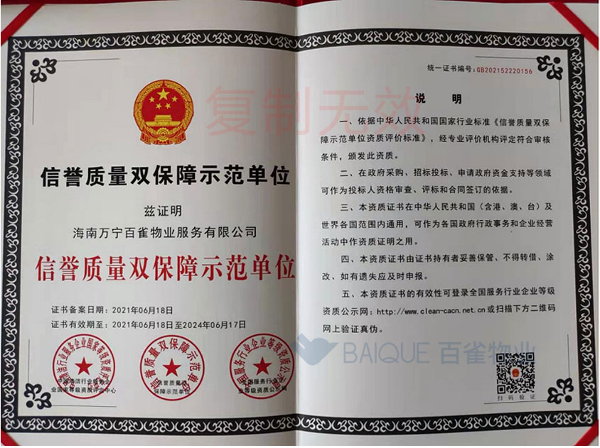 信誉质量比保障示范单位